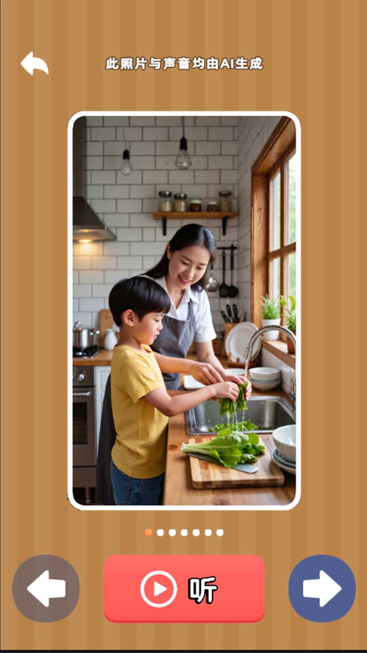 。为尚未准备完整素材的家庭提供参考范例,我们借用AI绘图和AI语音大模型设计了期望内容的演示模式